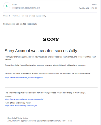 Create a Sony account