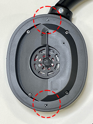 Check the 2 slots at the top and bottom inside the headphones. You can also see 2 arrows to mark the top and the bottom at the inside of the housing where the earpad is removed. Make sure that you align the slot and the arrow so as not to earpad attached shaky.